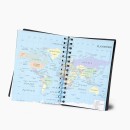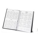 Agenda diária 2025 com espiral, material plástico para lacre. Contém folha com bolso duplo, folhas para preenchimento de dados pessoais, calendários 2024 a 2026, planejamento, receitas e despesas mensais, agenda telefônica, mapa do Brasil, mapa mundi e acompanha régua marca página de papel com 15 cm.