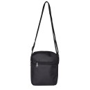 Bolsa de ombro em nylon com dois compartimentos, sendo o principal com bolso interno telado. Possui alça com opção de regulagem.