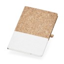 Caderneta de cortiça com detalhe em linho e suporte para caneta, contém marcador de página em cetim, página para dados pessoais, calendário 2023 a 2025, páginas de planejamento e aproximadamente 93 folhas marfim com pauta.