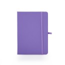 Caderneta emborrachada com suporte para caneta, elástico para lacre e marcador de página em cetim, contém aproximadamente 80 folhas com pauta na cor branca.