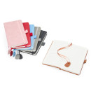 - Praticidade: Suporte para caneta, elástico para fechamento e fita de cetim com etiqueta.