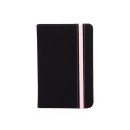 Caderneta emborrachada com marcador de página em cetim e fita elástica de nylon para fechar. Contém aproximadamente 78 folhas marfim sem pautas.
