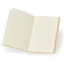 Descrição: Caderneta de kraft com marca página em cetim e elástico para lacre. Contém aproximadamente 80 folhas marfim pautadas.