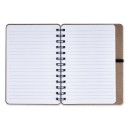 Caderneta B6 capa dura em kraft com wire-o e porta caneta. Contém aproximadamente 70 páginas pautadas na cor branca.