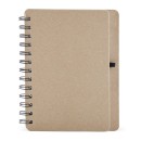 Caderneta B6 capa dura em kraft com wire-o e porta caneta. Contém aproximadamente 70 páginas pautadas na cor branca.