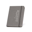 Caderno A5 com capa dura em rPET. Contém 96 folhas pautadas em papel cor marfim proveniente de gestão florestal sustentável, fita separadora, elástico e bolso em papel na parte traseira da capa. 140 x 210 mm