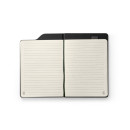 - Materiais: Capa dura em tecido poliéster 100% reciclado (100% rPET), folhas internas em papel cor marfim reciclado