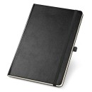 Caderno A5 com 80 folhas não pautadas em cor marfim e capa dura. Contém bolso interior, fita separadora, elástico e suporte para esferográfica (não inclusa). 137 x 210 mm