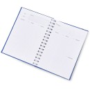 Caderno planner feito em capa cartonada com elástico para lacre. Com aproximadamente 62 folhas, o planner possui página para dados pessoais, calendários 2024 e 2025, planejamento anual, objetivos e metas, controle financeiro e resoluções do ano.