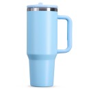 Caneca térmica com capacidade de 1,2 litros em inox 304 com parede dupla. Possui tampa acrílica rosqueável e bico flexível integrado para uso com o canudo. Conta com um prático pegador de plástico e acompanha canudo.