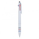 Descrição: Caneta plástica 3 em 1 com touch screen, cargas esferográficas nas cores: azul, preto e vermelho.