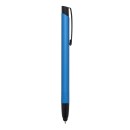 Descrição: Caneta metálica com ponteira touch screen, carga esferográfica azul e acionamento por clique.