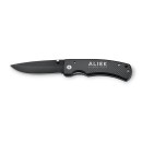Canivete em aço inox e metal com fecho de segurança e clipe. Fornecido em caixa presente.