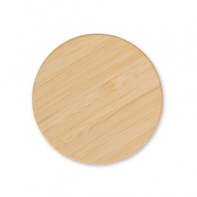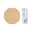 Carregador via indução formato disco com indicador de funcionamento em led, feito em Bambu. Compatível com smartphones com tecnologia por indução. Acompanha cabo USB. OBS.: O CARREGADOR APENAS TRANSFERE CARGA, ELE NÃO POSSUI BATERIA PARA ARMAZENAMENTO (NÃO É UM POWER BANK).