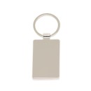 Chaveiro de metal retangular, frente com detalhe em bambu e verso liso.