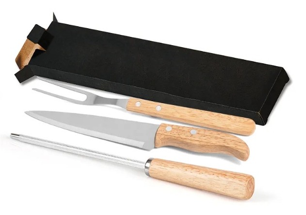 Conj. De Garfo, Faca E Chaira Em Madeira – 3 Pçs Personalizadas