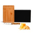 Conjunto composto por tábua retangular para queijo em Bambu com sulco ao redor e faca 4″ para queijo com cabo em Madeira/Inox.