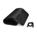 Desk Pad carregador por indução. O Produto pode ser colocado sobre a mesa com espaço suficiente para seu mouse e teclado, ainda oferecendo uma estação de carregamento wireless em sua parte lateral. O produto acompanha cabo USB.