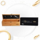 Acessórios para vinho em Metal com estojo em Bambu. Conta com espaço para a garrafa, tampão, termômetro, anel corta-gotas e abridor saca-rolhas. (NÃO ACOMPANHA GARRAFA)