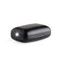 Fone de ouvido bluetooth com comandos touch e case carregador. Com lanterna e display de bateria, o case pode ser utilizado também como um power bank de baixa capacidade para emergências. Material plástico. Acompanham 2 pares de eartips em diferentes tamanhos, lanterna, alça e cabo USB.