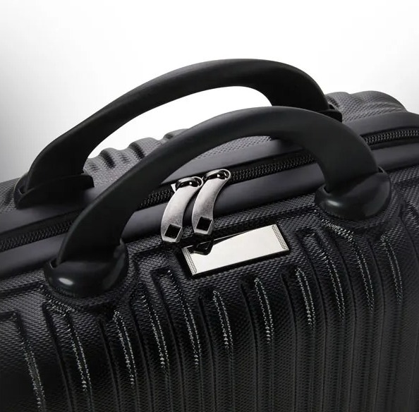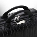 Frasqueira confeccionada em ABS rígido preto. Conta com fechamento em zíper, alça de mão, alça carona, parte interna com forro e divisória com zíper.