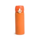 Garrafa 500ml em inox com botão e válvula para abertura. Possui um sistema de trava (basta mover para cima/baixo para abrir/fechar) pressione o botão central para abrir a tampa.