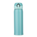 Garrafa térmica de 400ml de inox colorida com botão e válvula para abertura. Possui um sistema de trava (basta mover para cima/baixo para abrir/fechar), pressione o botão central para abrir a tampa(possui na parte interna borracha protetora evitando vazar o líquido). Para abrir a tampa por completo basta rosqueá-la, parte interna revestida em inox. Na embalagem do produto pode ir especificado a capacidade de 450ml ou 500ml devido aos fabricantes que trabalham terem impresso a descrição deste modo, porém ressalvamos a capacidade correta de 400ml.