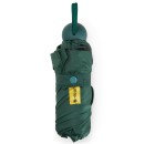 Guarda-chuva manual cápsula em poliéster de impacto impermeável e proteção UPF 50. Possui tecido interno em vinil com 8 varetas e estrutura em aço, pegador, botão de abertura e e alça de Nylon. Acompanha estojo protetor com alça.