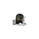Acompanha: Sacochila Nylon, fone de ouvido, Esqueeze, caderneta e caneta.