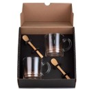 Apresentamos o Kit Canecas com Colheres 4 Peças Personalizado, a combinação perfeita de elegância, sustentabilidade e personalização para seus momentos de relaxamento. Ideal para compartilhar momentos especiais com amigos e familiares, presentear ou como um brinde exclusivo, este kit oferece a sofisticação do vidro e o toque natural do bambu.