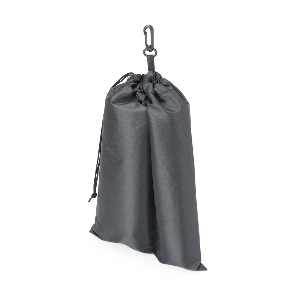 - Estojo prático e compacto: Ambos os itens são acondicionados em um estojo de nylon com alça ajustável e mosquetão, facilitando o transporte e o armazenamento.