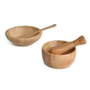 Conta com cumbuca redonda em bambu com capacidade de 200 ml e espátula, conta também com amassador de temperos. Estão perfeitamente acomodados em uma caixa para presentear.