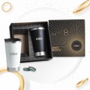 Kit de copos 500ml cada. Conta com dois copos térmicos, um preto e um branco, com tampa e abridor de garrafa. Confeccionados com dupla parede de inox, isolada a vácuo. Conservação aproximada líquidos quentes: 1h / Conservação aproximada líquidos gelados: 7h / Conservação aproximada líquidos com gelo: 15h Ideal para bebidas geladas ou quentes.