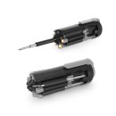 Conjunto de ferramentas em ABS com clipe, 4 LEDs e 5 pontas diferentes removíveis. Incluso 2 pilhas AAA.