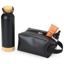 - Sugestão de personalização: Gravação a laser na garrafa; silk screen na nécessaire e na tampa da caixa