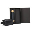 - Sugestão de personalização: Gravação a laser na garrafa; silk screen na nécessaire e na tampa da caixa