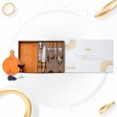 Kit para Queijo, Churrasco e Vinho. Composto por tábua para Churrasco e tábua para frios em Bambu; garfo em Bambu/Inox; faca 8″, duas facas, uma espátula e um garfo para Queijo em Madeira/inox; abridor de Vinho em Inox e duas taças em vidro.