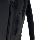 Descrição: Mochila em couro sintético 17 litros resistente à água com cinco compartimentos, sendo o principal com bolso para notebook 156. Com divisórias internas para acessórios, a mochila possui suporte externo usb, alça para encaixe em malas de viagem e duas alças de mãos, sendo uma delas lateral para o transporte da mochila no modo pasta.