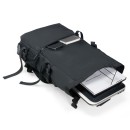 - Compartimentos inteligentes: Bolso frontal com zíper, bolso interno para documentos e celular, compartimento para notebook e bolsos laterais de tela para garrafas.