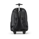 A mobilidade é garantida pelas suas 2 rodas duplas, que proporcionam um deslizamento suave e estável. Para maior durabilidade e higiene, ela conta com um protetor de rodas, evitando que as alças sujem ao arrastar a mochila. A pega extensível em alumínio com mola, que atinge 550mm de altura, permite que você a puxe com facilidade, aliviando o peso dos ombros.