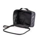 Nécessaire confeccionada em nylon, com frente em visor transparente, fechamento por zíper e alça superior. Inclui também uma alça de transporte em nylon.