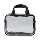Nécessaire de PVC. Possui dois compartimentos e duas alças laterais de mão em nylon.