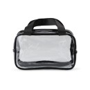 Nécessaire de PVC. Possui dois compartimentos e duas alças laterais de mão em nylon.