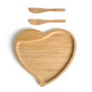 Petisqueira em bambu com formato de coração e duas espátulas de 14 cm.