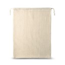 Sacola 100% algodão (120 g/m²) com malha 100% algodão na parte frontal (100 g/m²) e cordões em algodão para fechar. Sacola ideal para levar alimentos.